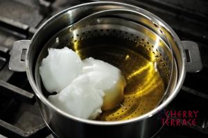 - 盛りつけるお皿はオーブンなどに入れ、あたためておく。