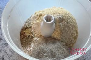 - Bの材料を別の容器で混ぜ、イーストを混ぜ溶かしておく。