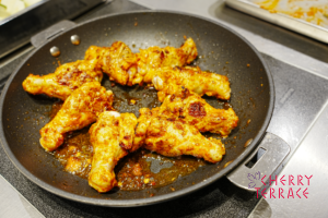 - 手羽元に塩こしょうで下味をつける。そこにハリッサを揉み込み30分ほどねかせる。