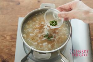• 最後に青唐辛子を加え、しょうゆ麹で味を調える。