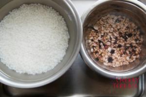 - 米と五穀米は洗って水に20分ほどつける。