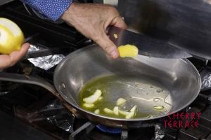- レモンの皮を剥き一緒に炒め、香りを移す。