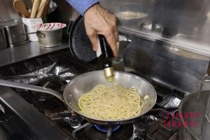 - 茹でたスパゲッティ、ラウデミオを加え混ぜ合わせる。