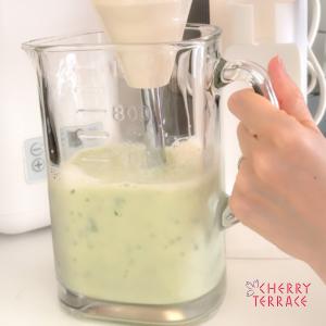 - 材料を全て容器に入れバーミックス(ミンサー)でなめらかにする。※甘さはメロンの甘さによるところ大きいので、お好みで甘麹の量を調節したり、しっかり甘くしたければお好みの甘味料を足したりしてもOK。