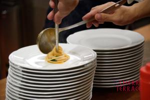素材の持ち味を生き生きと楽しめる味わいに仕上がります。パスタ・ティレーナは、パックを開けた時に漂う古代小麦ならではの香りがいいですね。最後にラウデミオをひと回しかけると、古代小麦ならではの良さを引き出すことができます。