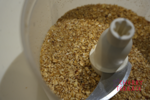- バーミックス(スライシー/チョッピングナイフ)にナッツ、オートミールを入れ砕く。