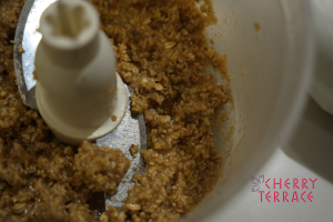 - 細かくなったらココナッツオイル、塩、メイプルシロップも加えさらに回す。