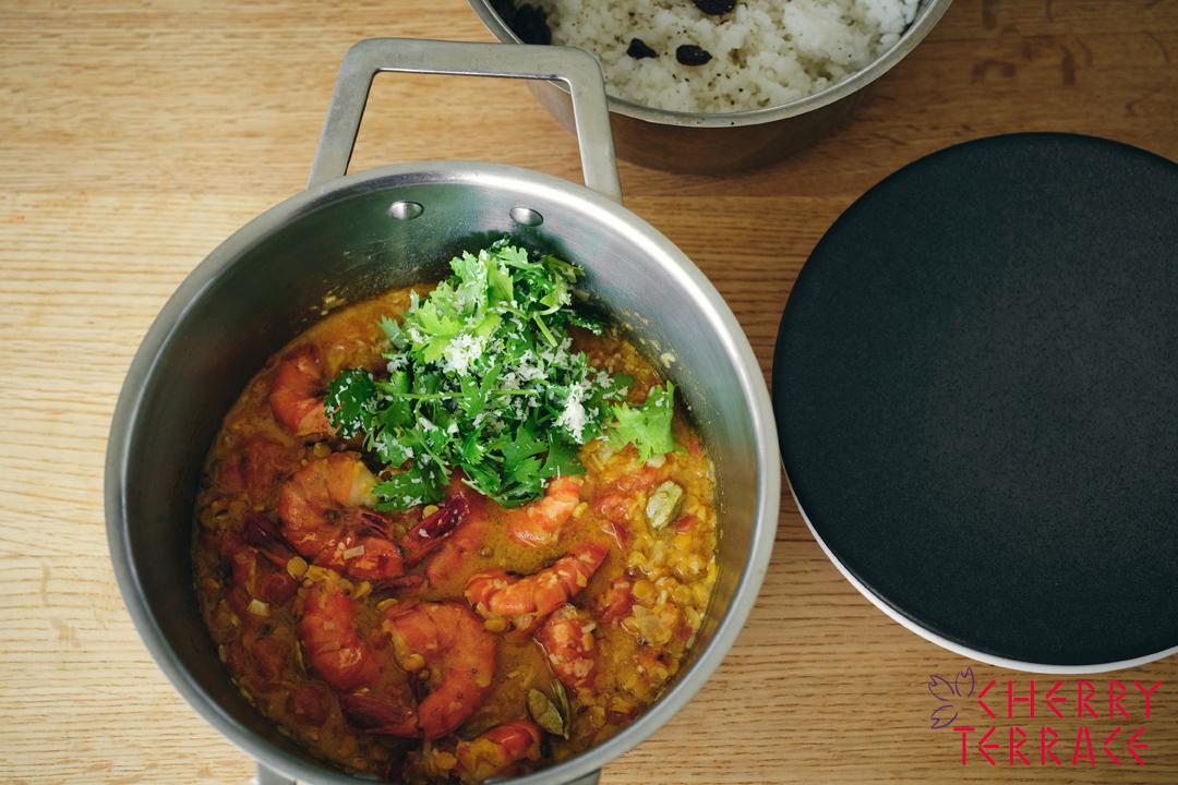 クリステル1826はその形状から熱の回りが早いので、煮込まずさっと仕上げるのが特徴のスリランカ「パリップ」風のカレー作りにぴったり。マイルドなおいしさなので、辛党の方はチリ、カイエンヌペッパーなどを適宜加えられるのもいいでしょう。また、液だれしにくく、鍋のどこからでも注ぎやすいので、テンパリングして香りよく仕上げた香辛料をほかの鍋に移すのも簡単です。